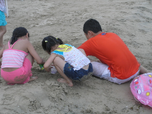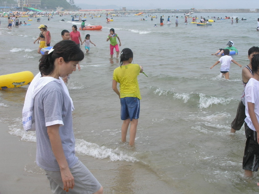 ¹Ù´Ù¿¡¼ ¹°³îÀÌ ÇÏ´Â ÀÚ³àµéÀ» ¹Ù¶óº¸´Â ¾î¸¥µéÀº °ÆÁ¤½º·¯¿î ´«Ä¡.